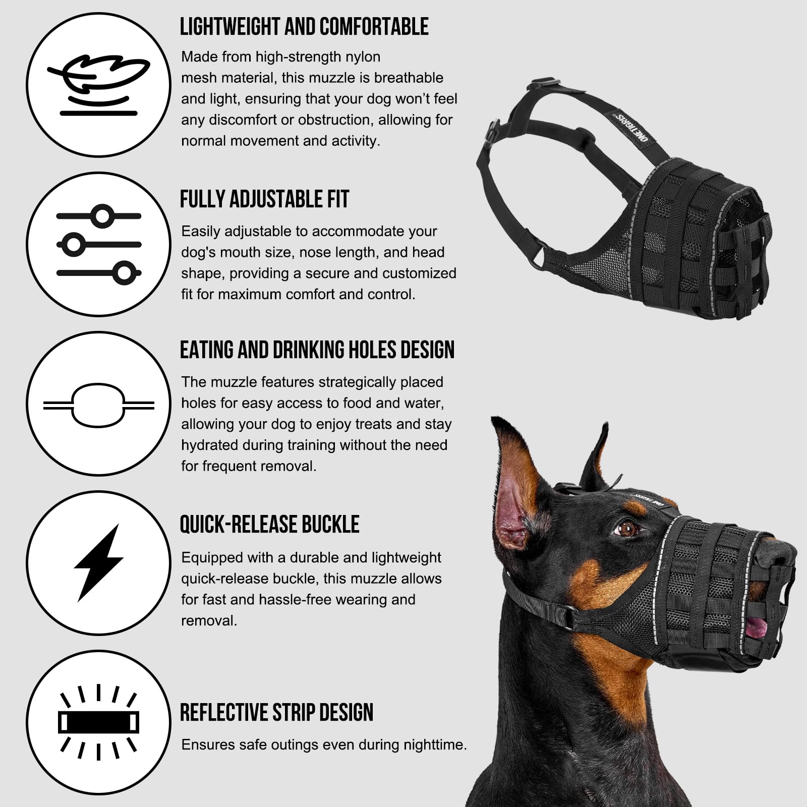 OneTigris Dog Muzzle, Military-Grade Soft Muzzles, Reflective Breathable Adjustable Dog Muzzle for Medium Large Sized Dogs, Prevent Biting Chewing Fighting, Allow Panting Drinking