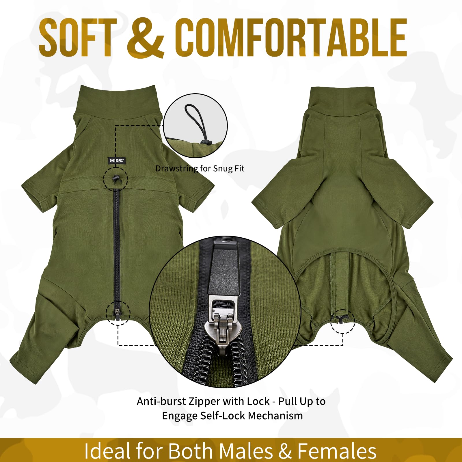 OneTigris Dog Pajamas - Breathable Modal Stretch Dog Clothes, Lightweight Anti-Shedding Onesie for All Seasons, Back Locking Zipper & Adjustable Chest Drawcord, Prevent Licking & Protect Skin