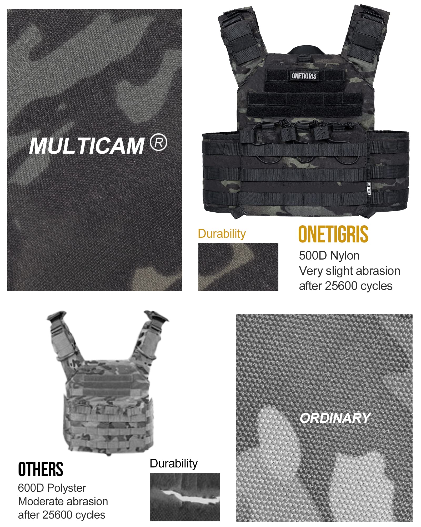 - 500D nylon construction for long-lasting performance in tough conditions.