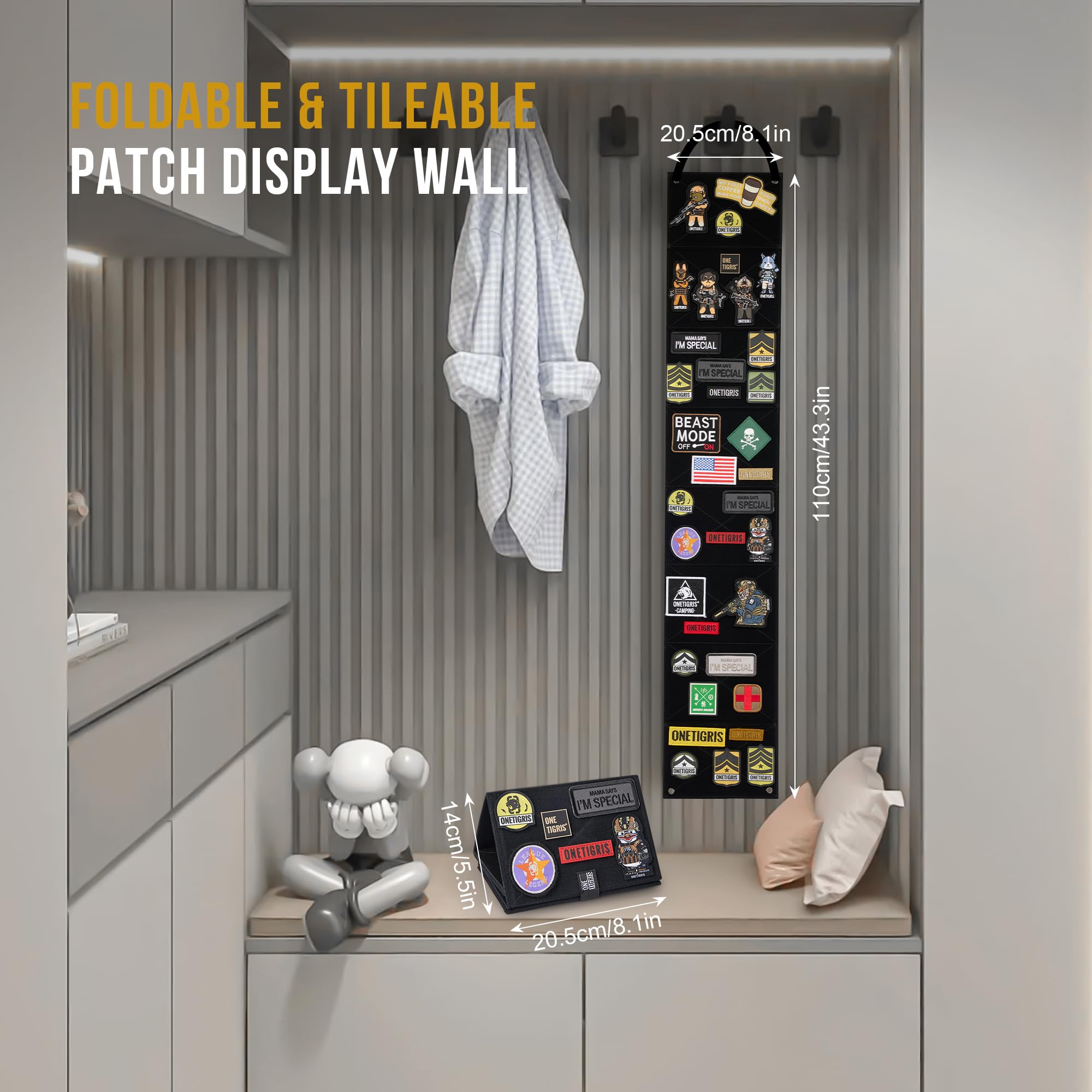 - COMPACT & NEAT: With dimensions of 112cm x 21cm(43" x 8"), our patch panel holder offers a compact size that keeps your patch collection tidy and organized. It can accommodate various sizes of embroidered patches, iron-on patches, and letter patches, providing flexibility for your collection