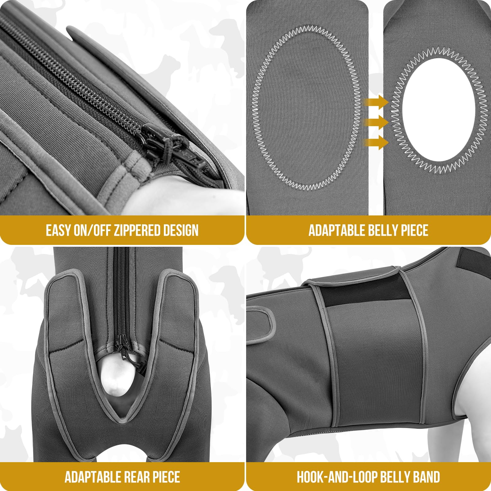 -5%OneTigris Recovery Suit for Dogs, Zipper On Recovery Suit for Female Male Dog, Onesie Abdominal Wounds Cone E-Collar Alternative Prevent Licking Spay Recovery Suit (Gray, XL)—