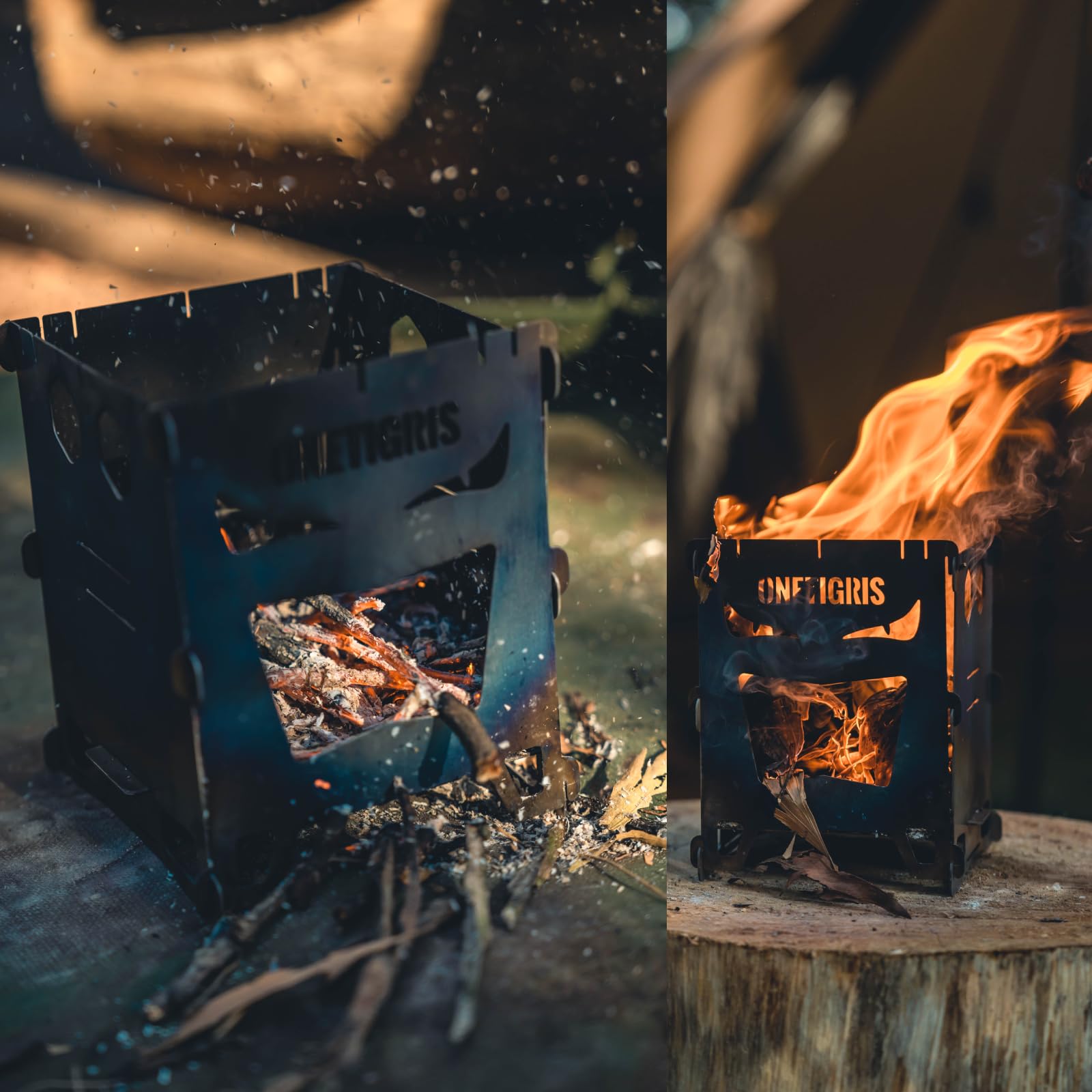 OneTigris ROCUBOID Camping Backpacking Titanium Stove Portable Foldable Burning Wood Stove for Outdoor Hiking Picnic BBQ,Weights 460g/16.2oz